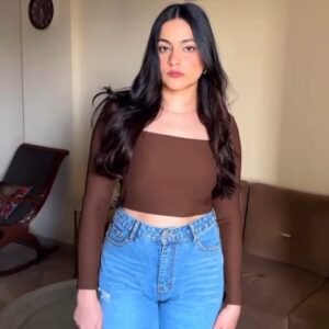 Step into minimalist chic with our Choco Mocha Long Sleeve Square-Neck Crop Top, a stylish essential that blends sophistication with