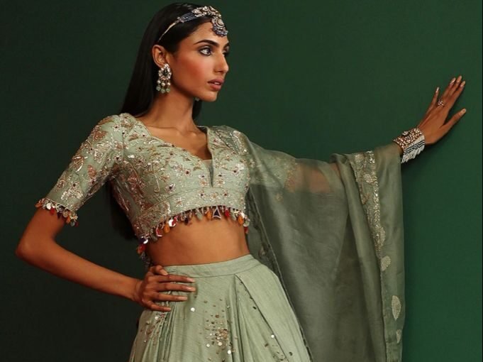 Ideal for both day and evening ceremonies, this lehenga brings a contemporary fairytale quality to bridal fashion. Whether you’re exchanging vows under the open sky or dancing under the stars, Celestial Sage ensures you look like the most radiant version of yourself.
