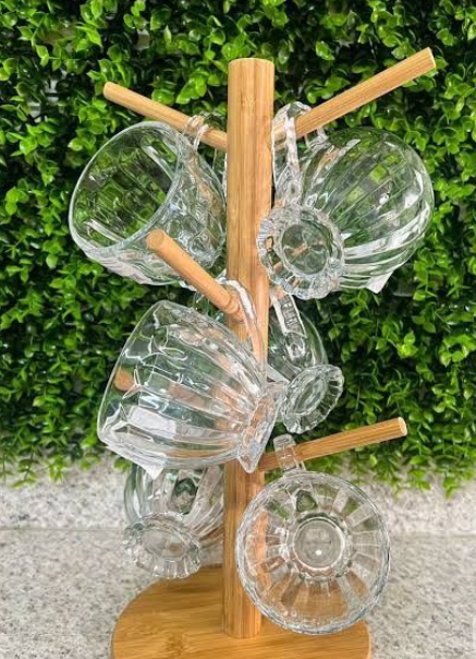 Bamboo Mug Tree Stand with 6 Hooks