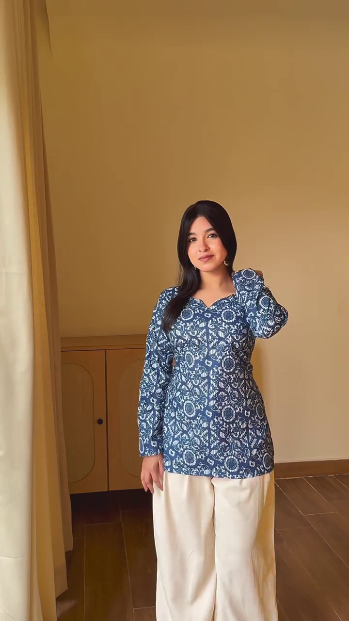 Paired with crisp white straight-fit pants, this ensemble creates a balanced and sophisticated look. The neutral color combination makes it easy to accessorize—pair it with statement earrings, flats, or juttis for a complete ethnic vibe.