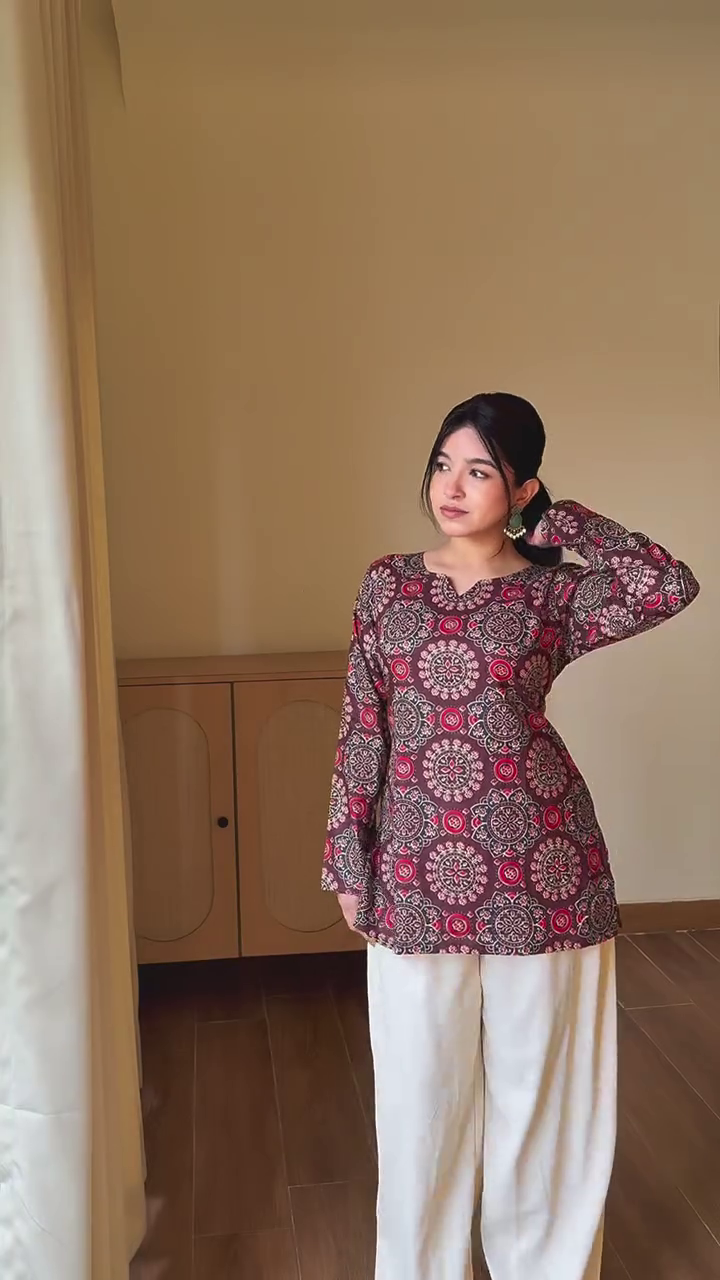 Chic Brown Printed Kurta with White Pants | Comfortable Everyday Ethnic Wear for Women
