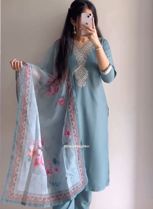 If you’re looking for an outfit that combines elegance, comfort, and versatile styling, this Teal Blue Embroidered Kurta Set with Floral Dupatta is the perfect choice. It’s not just an outfit—it’s an expression of grace, tradition, and modern femininity, curated for women who love effortless ethnic fashion.