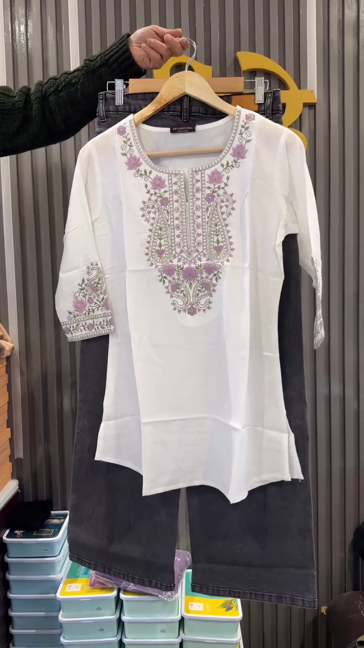 This embroidered kurti is easy to maintain and designed for regular use. The high-quality stitching ensures durability, while the embroidery retains its charm even after multiple wears when cared for properly. It is a perfect choice for women who appreciate classic embroidery, subtle colors, and versatile fashion pieces that can be styled in many ways.
