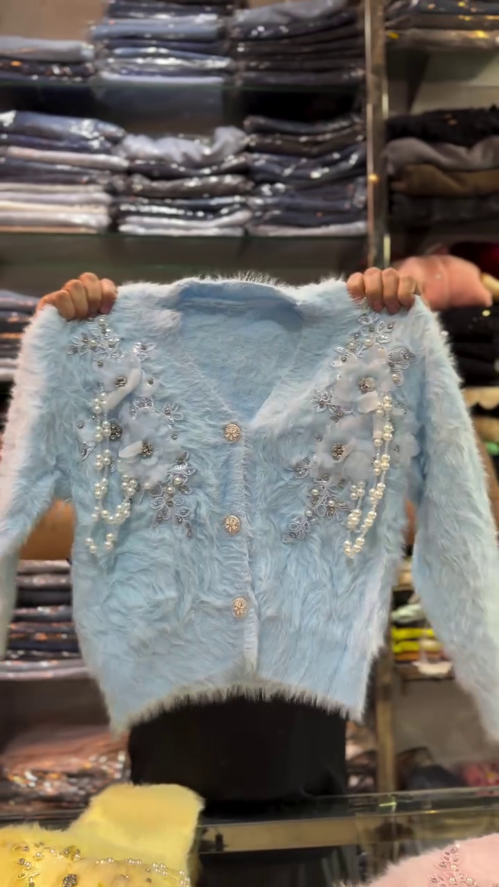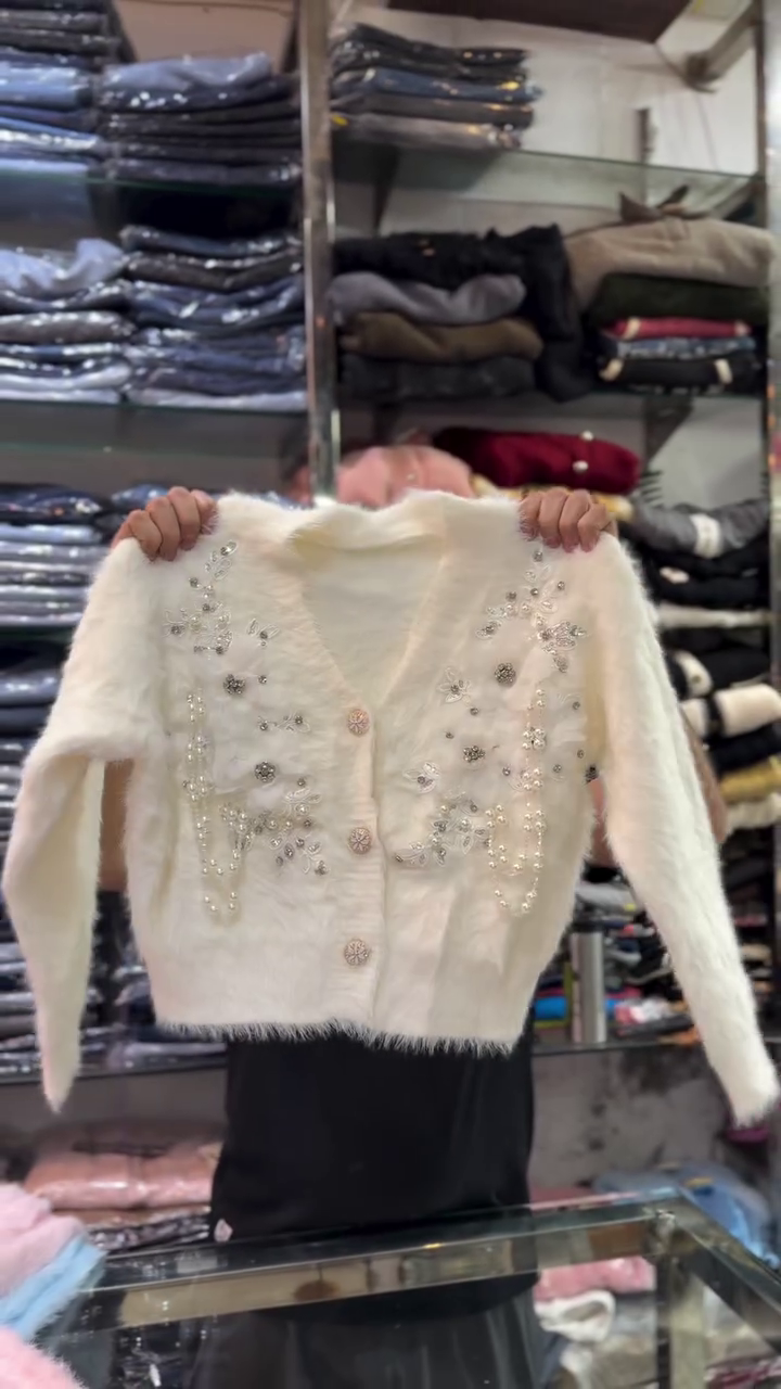This cardigan is also ideal for boutique displays, online stores, Meesho resellers, fashion influencers, and Instagram reels because of its premium appearance and eye-catching design. It photographs beautifully, with the embellishments reflecting light and creating a luxurious winter vibe. Customers looking for trending winter sweaters will find this piece both stylish and practical.