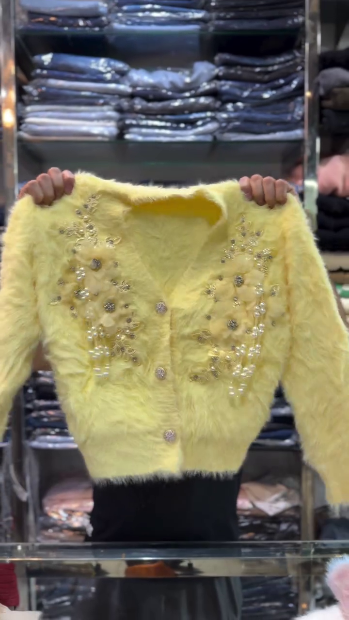 Whether you want to look fashionable at family gatherings, attend a festive event, or simply elevate your everyday look, this embellished cardigan fits every occasion. It’s lightweight enough for indoor wear yet warm enough to protect you against the winter chill. The soft fur texture ensures maximum comfort throughout the day without causing irritation or heaviness.