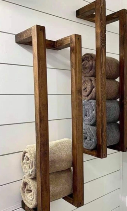 rustic wooden wall-mounted towel organizer