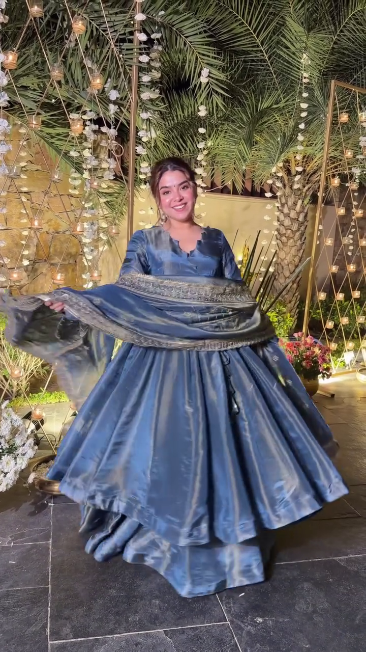 If you’re looking for an outfit that combines tradition, elegance, and modern flair, the Steel Blue Silk Anarkali Gown Set with Embroidered Dupatta is the perfect choice. Add this stunning ensemble to your collection and make every celebration unforgettable with grace, style, and confidence.