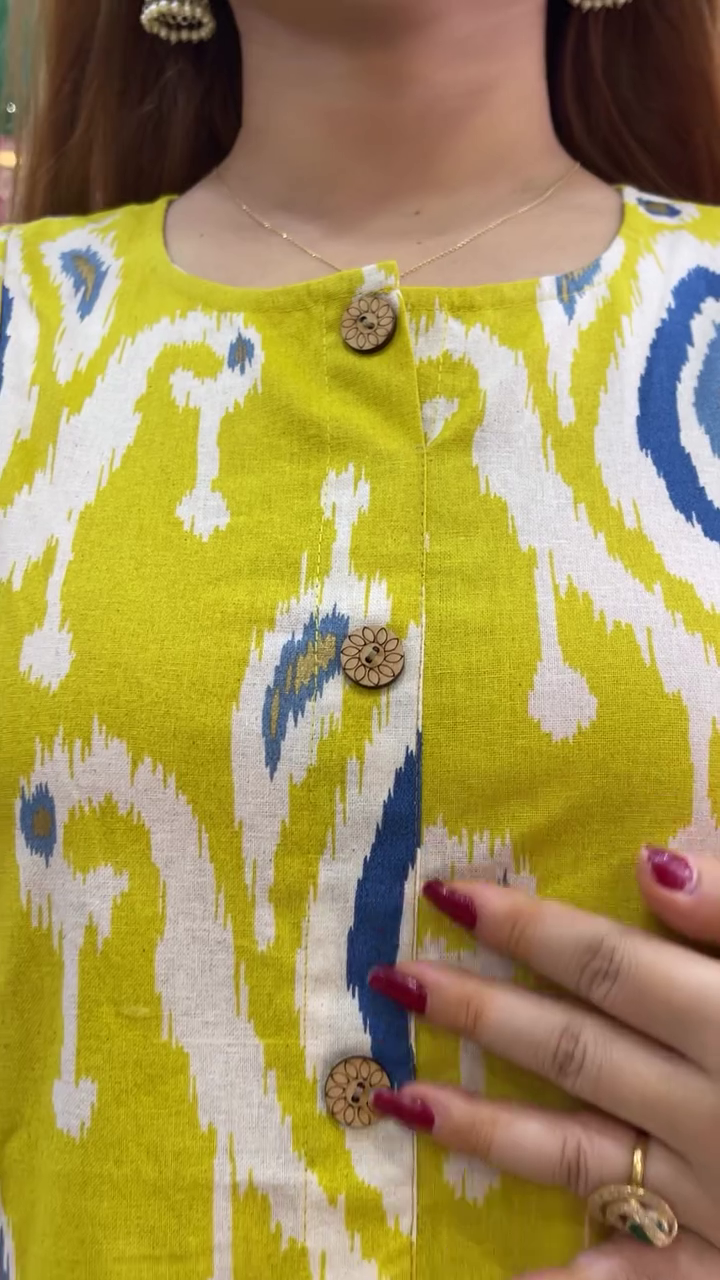 Bring effortless elegance to your everyday wardrobe with this Sunshine Yellow Ikat-Inspired Printed A-Line Kurta, a perfect blend of traditional artistry and modern comfort. Designed for women who appreciate vibrant colors and timeless silhouettes, this kurta is ideal for daily wear, festive gatherings, office ethnic days, and casual outings.