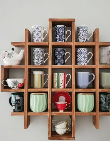A stylish wooden wall rack designed to showcase and organize mugs in a clean, grid-style layout. Each cubby securely holds a single cup, turning everyday drinkware into a decorative feature. Perfect for kitchens, coffee corners, or dining areas, this space-saving organizer blends functionality with warm, modern-rustic charm. Ideal for mug collectors who want both order and visual appeal.