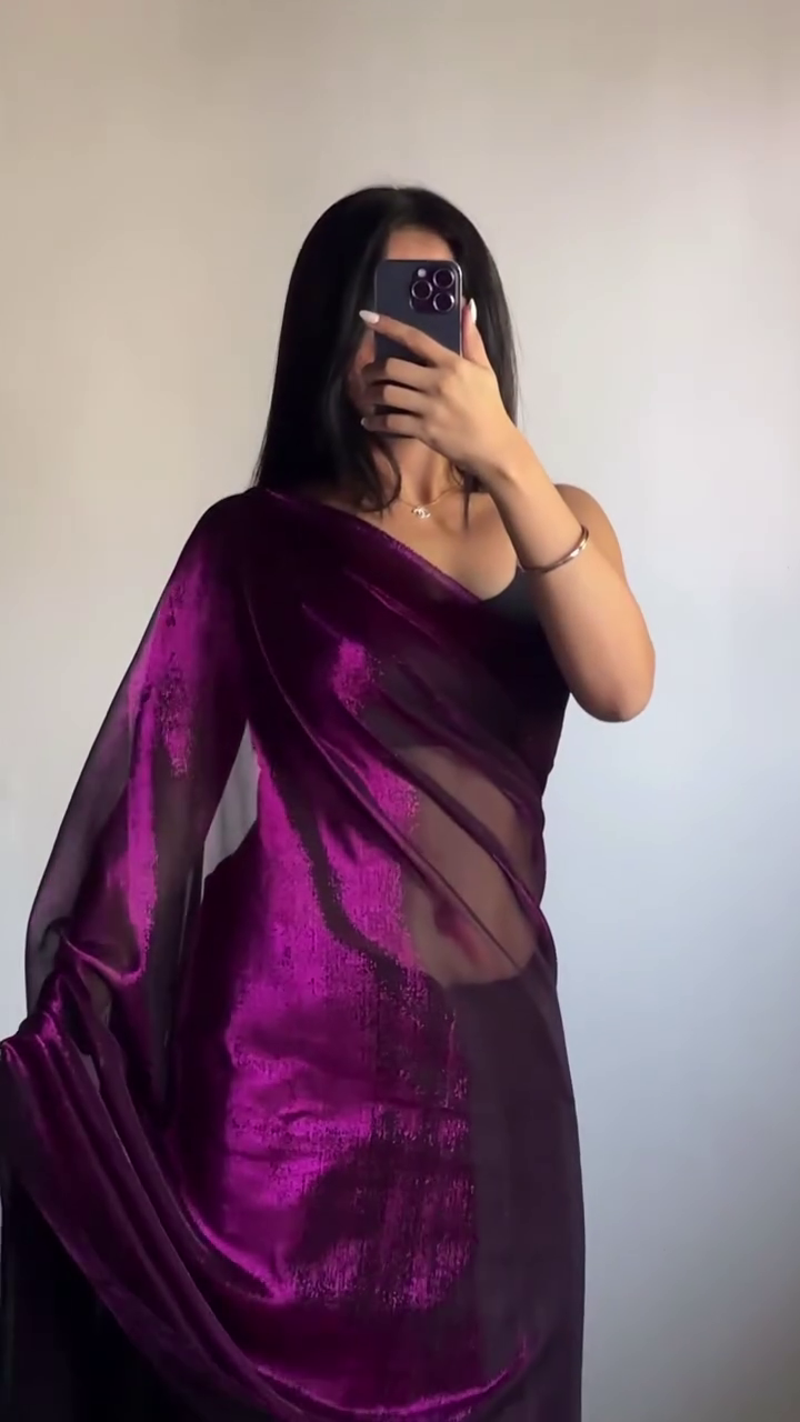 The rich wine-purple hue paired with a delicate shimmer finish makes it a perfect choice for evening parties, weddings, cocktail events, festive celebrations, and receptions. Easy to style with statement jewellery or a sleek blouse, this saree offers a modern yet timeless appeal. Comfortable, flowy, and elegant, it’s ideal for long wear without compromising on style.