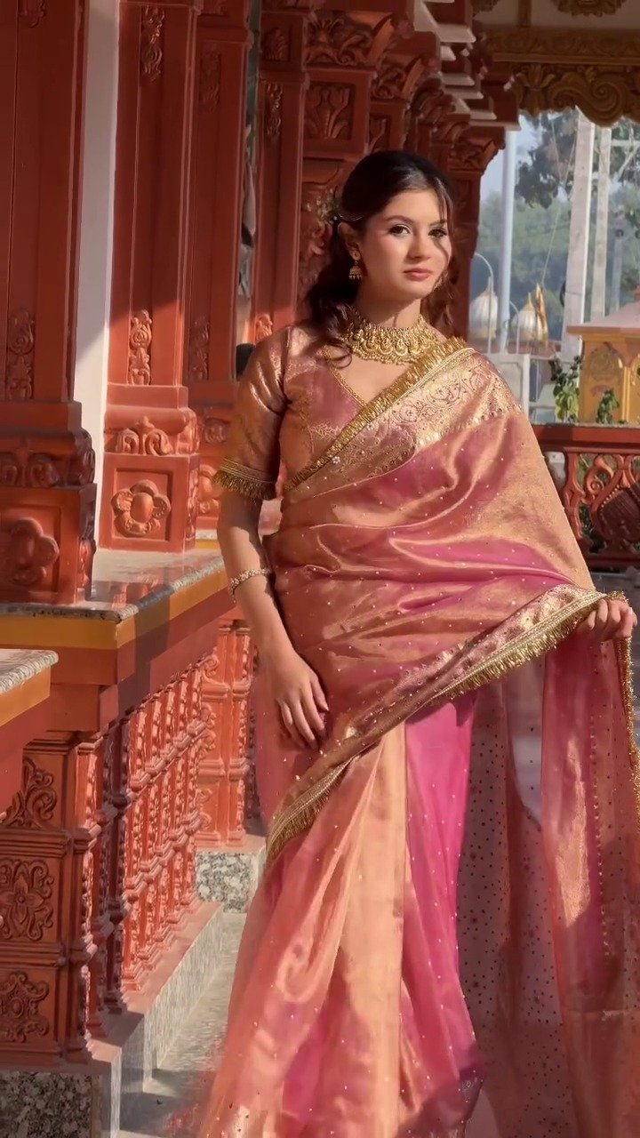 Add a touch of grace and tradition to your wardrobe with this stunning women’s peach pink silk saree featuring an elegant golden border. Designed with a soft sheen and delicate detailing, this saree exudes timeless charm and sophistication. Perfect for weddings, festive celebrations, temple visits, and special occasions, it offers a luxurious drape and comfortable wear. The subtle shimmer and rich color combination enhance its regal appeal, making it easy to style with traditional jewelry. A perfect blend of classic beauty and modern elegance, this silk saree is a must-have for ethnic fashion lovers.