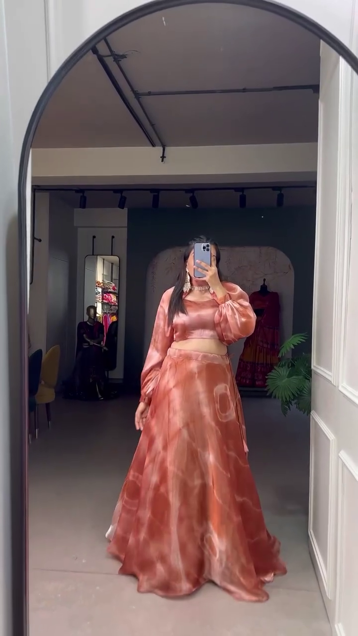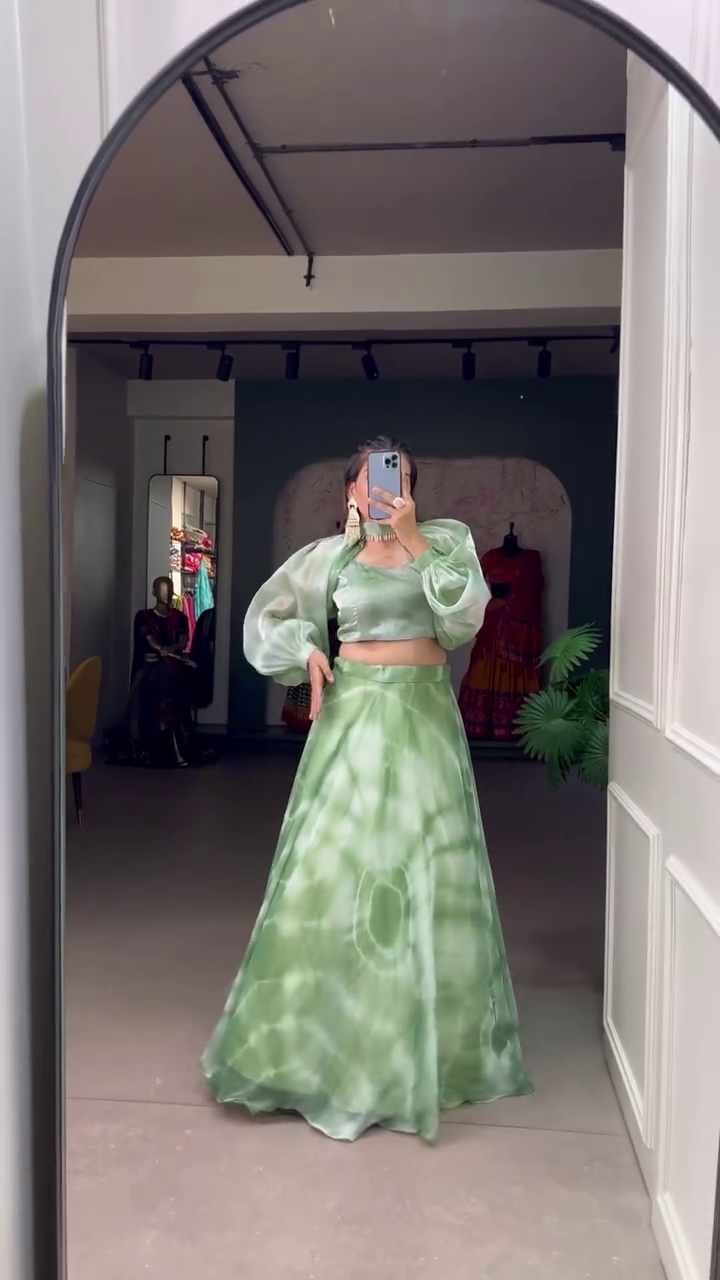 Whether you’re attending a festive event or looking for a unique Indo-western ensemble that stands out, this Mint Green Tie-Dye Organza Lehenga Set is the perfect choice. Its refined design, premium fabric, and modern silhouette make it a timeless addition to your festive wardrobe.