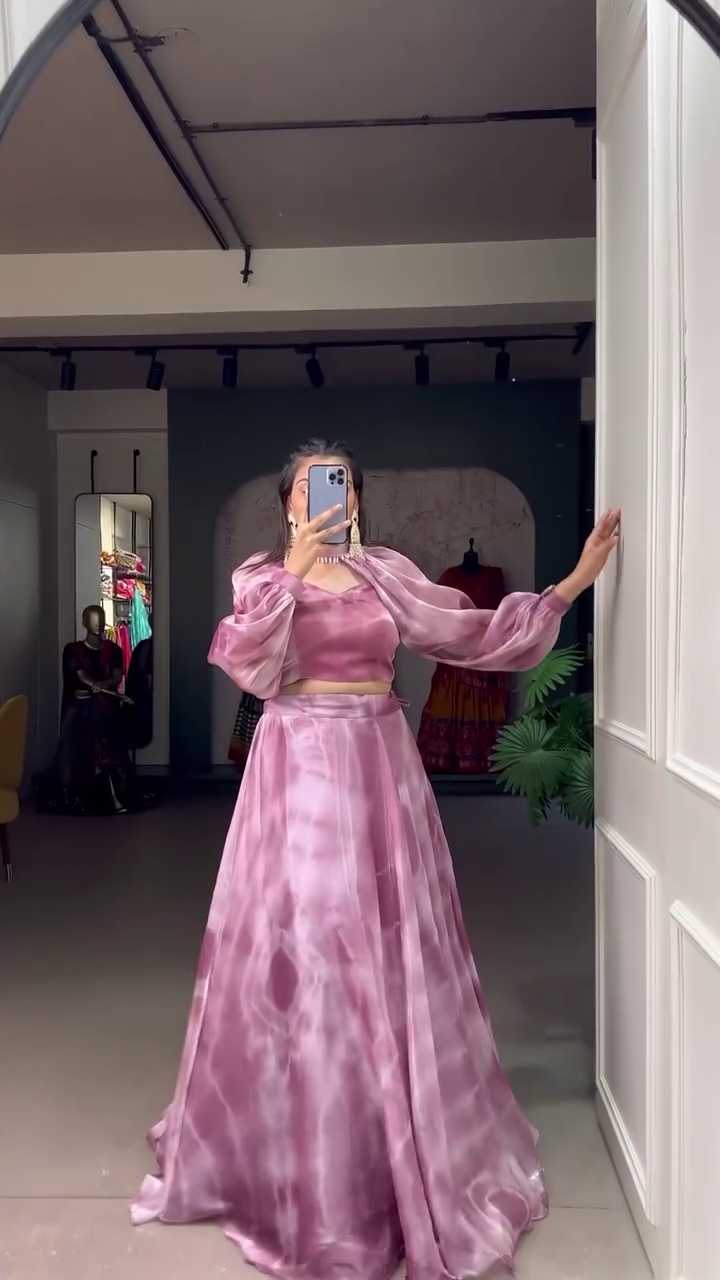 Step into effortless elegance with this Women’s Mint Green Tie-Dye Organza Lehenga Set, a refreshing blend of modern design and festive sophistication. Designed for women who love contemporary silhouettes with a soft ethnic touch, this outfit is perfect for festive celebrations, cocktail parties, mehndi functions, destination weddings, and special occasions.